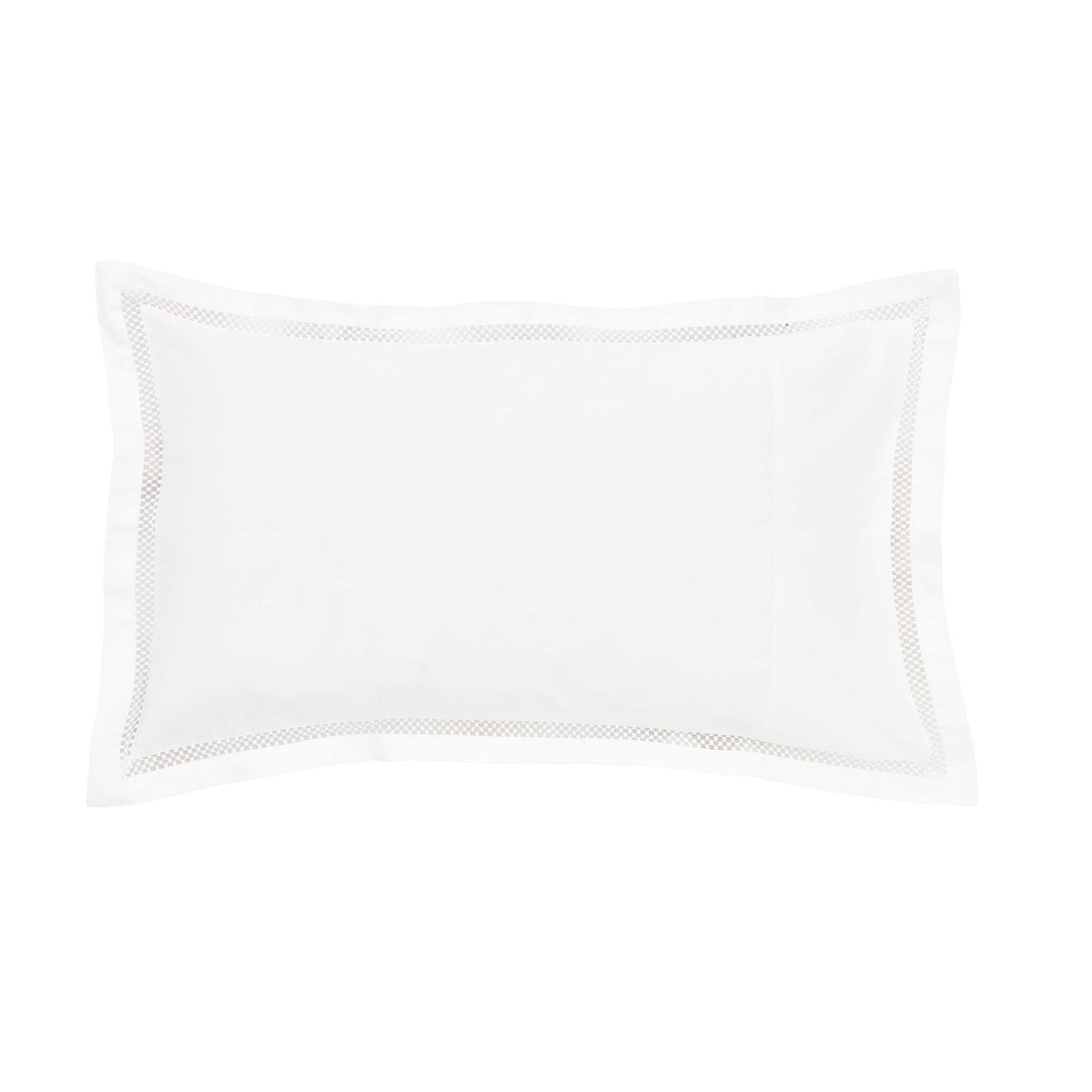 A calm and sophisticated bedding design composed of consciously sourced pure cotton sateen in an indulgent 250TC. Super smooth, the white ground all over is punctuated with two lines of intricate lace detailing.