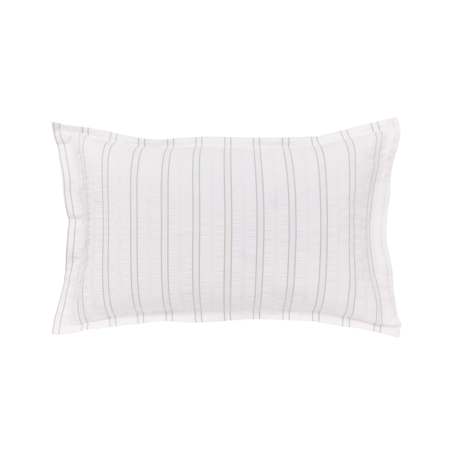 Sleep easy on this soft-to-the-touch waffle bedding enhanced with a contrasting grey stripe. Made from pure cotton, it will naturally regulate your body temperature throughout the night, keeping you cooler on balmy summer evenings. Available in three sizes of duvet cover and Oxford pillowcases which have a plain percale reverse. The leafy green tones are repeated across the Imogen hand quilted throw and cushion and the Burr fringed wool throw.