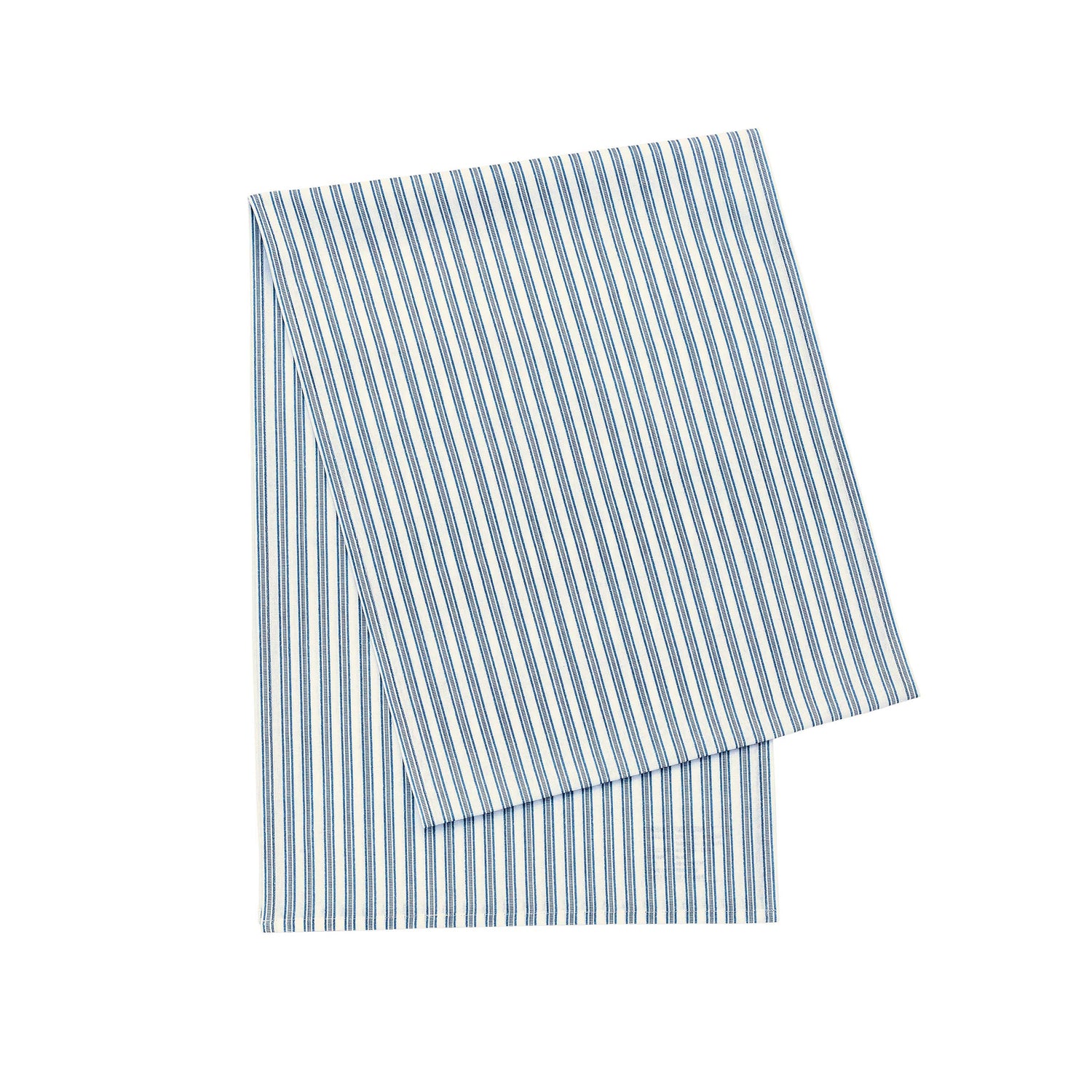 The Linn table runner features a delicate ticking stripe in calming Ballintoy Blue tones, bringing a timeless feel to your dining table. Printed on cotton, it coordinates perfectly with the Sophie kitchen textiles for a softly layered, elegant look.